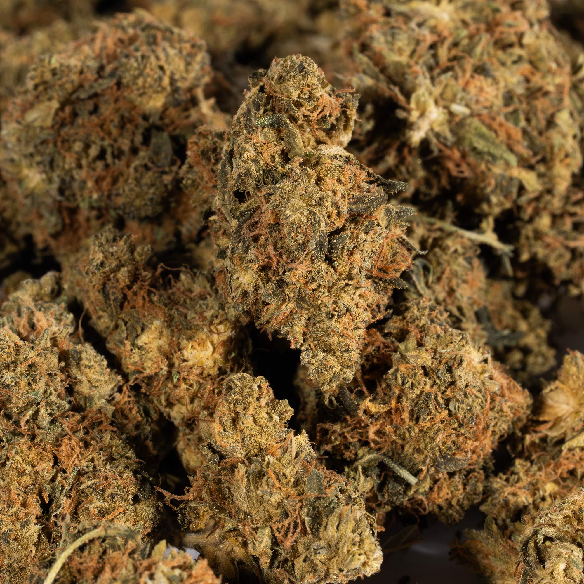 Death Bubba is an indica dominant hybrid (70% indica/30% sativa) strain created as a descendant of the hugely popular Bubba Kush strain. This dank bud boasts an average high THC level that ranges between 19-21% and effects that can end in an almost death-like sleep. Almost immediately after smoking, you’ll feel a wave of rushing focused energy wash over you that leaves you uplifted and motivated with tendencies towards having psychoactive experiences. As the high continues, you’ll be eased into a state of utter relaxation with deep introspection and spaciness that can cause you to become distant in social situations. Upon the comedown from the high, Death Bubba pulls you into a deep and peaceful undisturbed sleep that lasts for hours on end, giving you the appearance of being unwakeable. Death Bubba has an aroma of musky earthy pine and a taste of spicy lemon pine with a hint of pungent earth upon exhale. This bud has medium-sized dark forest green nugs with rich purple undertones and a spattering of fiery orange hairs. Each nug is completely covered with dark olive green leaves that are almost furry and have a thick layer of frosty sandy white trichomes.