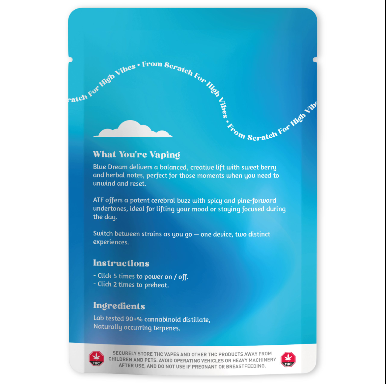 Inside the dual-chamber design, each strain maintains its full terpene expression. Blue Dream delivers mellow blueberry sweetness with a calm, motivating high, while ATF punches through with its bold, skunky aroma and legendary mental lift. The combination? A functional, yet inspiring experience that keeps you productive, present, and elevated.