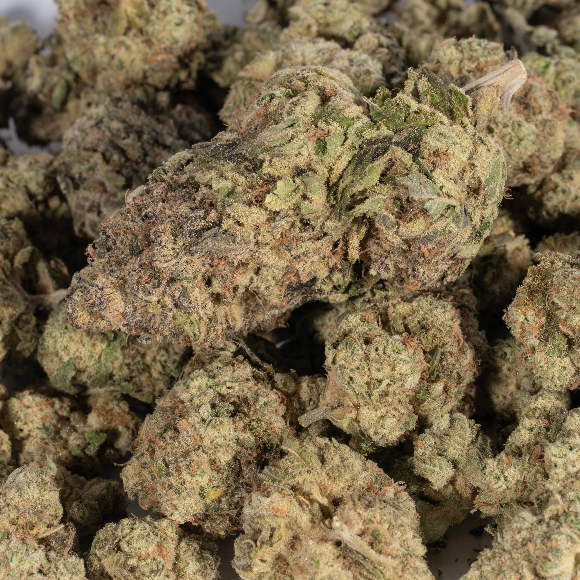 Jack Herer, also known as “The Jack,” “JH,” “Premium Jack” or “Platinum Jack” is a sativa dominant hybrid strain (80% sativa/20% indica) created through crossing the classic Haze X (Northern Lights #5 X Shiva Skunk) strains. One of the most famous buds on the planet, Jack Herer packs a lifted and energizing high that’s perfect for a day when you need a little extra oomph to get up and moving. You’ll feel the effects hit you almost as soon as you exhale, filling your brain with a lifted sense of clear-headed euphoria and motivation that’s accented by a boost in creativity and focus. You’ll find that conversations come easily in this state as you’re inspired to talk about anything and everything from philosophy to your favorite foods. Combined with its high 19-21% average THC level, these effects make Jack Herer a great choice for treating chronic stress or anxiety, depression, headaches or migraines and chronic fatigue. This bud has a sweet and sour citrusy lemon flavor with a woody pine exhale. The aroma is said to be like Pine-Sol, with a lemony pine overtone accented by earthy herbs and spicy flowers. Jack Herer buds have oversized pepper-shaped bright neon green nugs with golden undertones, thick orange hairs and a coating of frosty golden-amber crystal trichomes.